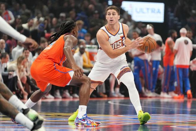 雷霆過去10場豪取10連勝,太陽上一場客場112-100戰(zhàn)勝國王。本場雷霆缺少維金斯、索伯、托皮奇、哈爾滕施泰因,太陽缺少格林、鄧恩與阿倫。雷霆二當(dāng)家杰倫復(fù)出迎來賽季首秀,首節(jié)開局雷霆5-0領(lǐng)先,太陽連追4分,雙方拉鋸戰(zhàn)纏斗至9-9。雷霆連得4分取得領(lǐng)先,華萊士三分開火率隊(duì)擴(kuò)大18-13領(lǐng)先,太陽多點(diǎn)開花一波8-2攻勢反超1分。雷霆連得5分奪回領(lǐng)先,太陽再追4分,首節(jié)比賽結(jié)束雙方維持25-25,亞歷山大首節(jié)6中1僅得到4分。