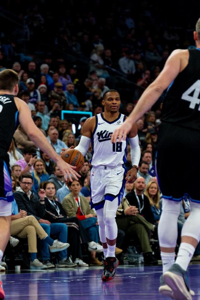 末節(jié)比賽,雙方進(jìn)攻火力大幅升級,兩隊(duì)最后一節(jié)合計(jì)狂轟84分,且均是單節(jié)轟下38+得分,威少攻傳結(jié)合率隊(duì)末節(jié)狂轟46分。威少成功達(dá)成個(gè)人本賽季第3次三雙,也是生涯第206次三雙,但國王還是119-128輸給爵士無力完成翻盤。