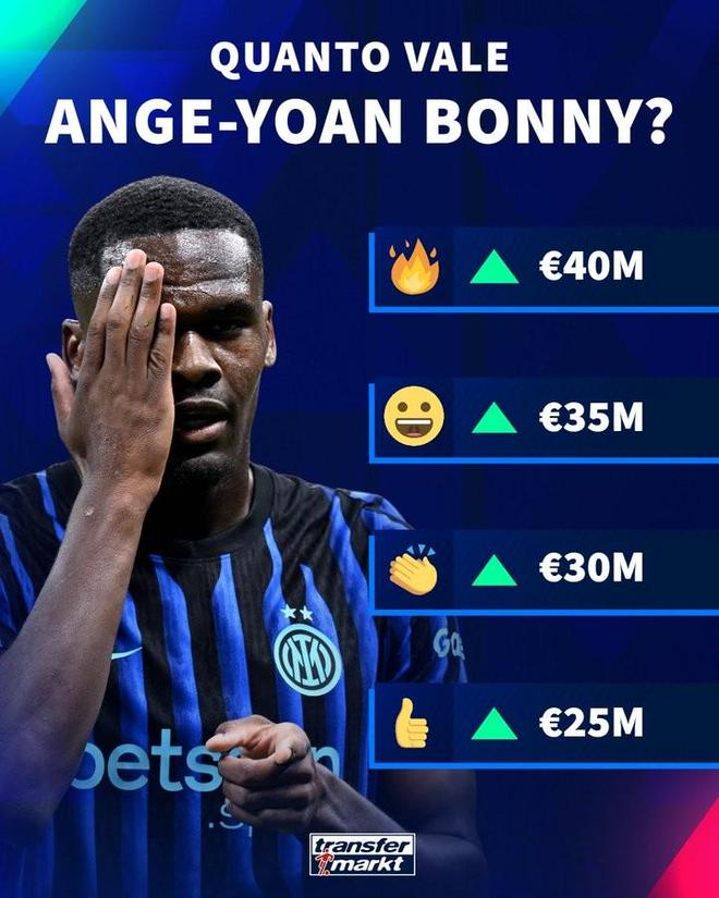 德轉(zhuǎn)將對意甲球員的身價(jià)進(jìn)行更新,今日德轉(zhuǎn)預(yù)熱國米前鋒博尼身價(jià)上漲,球員最低漲至2500萬歐,最高漲至4000萬歐。